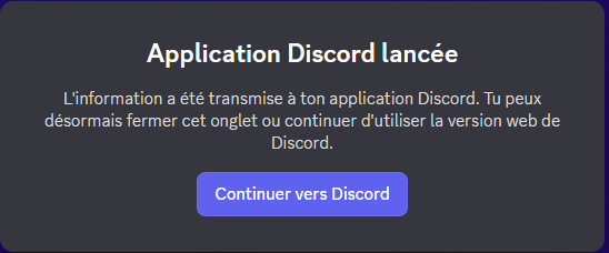 4 - Cela ouvre votre application Discord (sinon cliquez sur le bouton Continuer vers Discord)