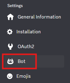 7 - Dans le menu de gauche, cliquez sur “Bot”.