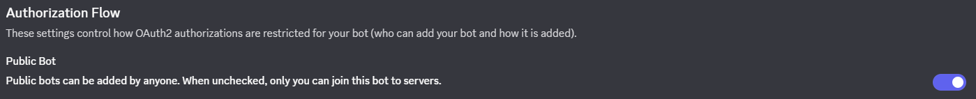 12 - Dans la section Authorization Flow, vérifiez que la case Public Bot est bien cochée