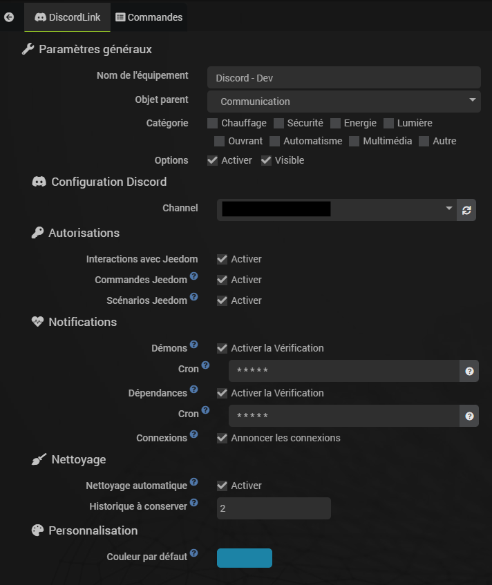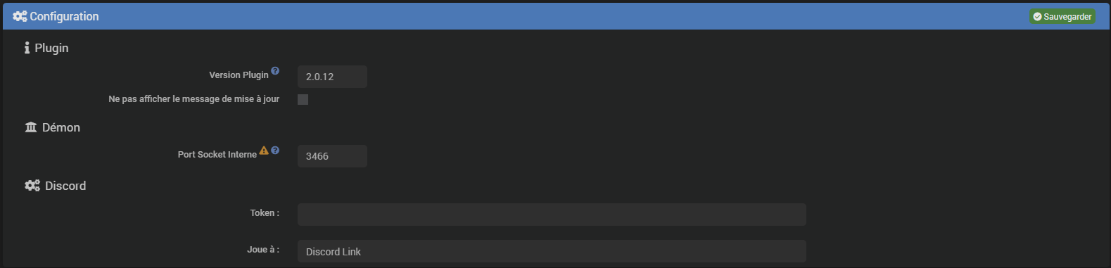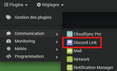 La configuration des équipements Discord Link est accessible à partir du menu plugin.