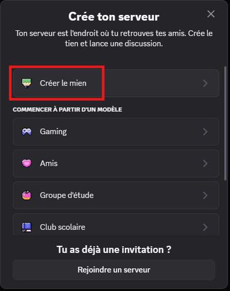 1 - Dans le menu de Gauche (icônes), cliquez sur le bouton + pour créer votre Serveur Discord.
