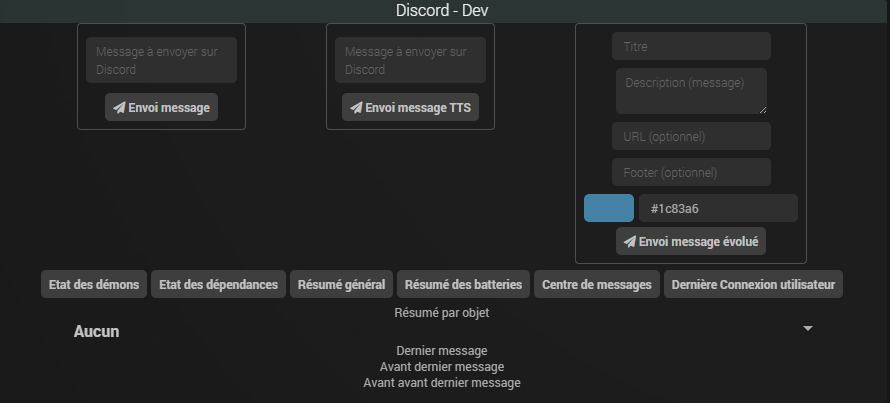 Si vous ajoutez ou renommez un objet Jeedom et que la liste n’est pas encore à jour dans un scénario, vous pouvez forcer la mise à jour en sauvegardant l’équipement Discord Link correspondant ou en redémarrant le démon.