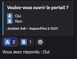 Cela va générer la question, l’envoyer dans Discord sous forme de message évolué, et vous pourrez alors cliquer sur la réponse pour que celle-ci soit prise en compte.