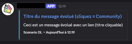 Si vous joignez des images à un message évolué, Discord les affiche en galerie visuelle (grille 2×2). Seules les 4 premières images sont affichées ; les suivantes sont ignorées.