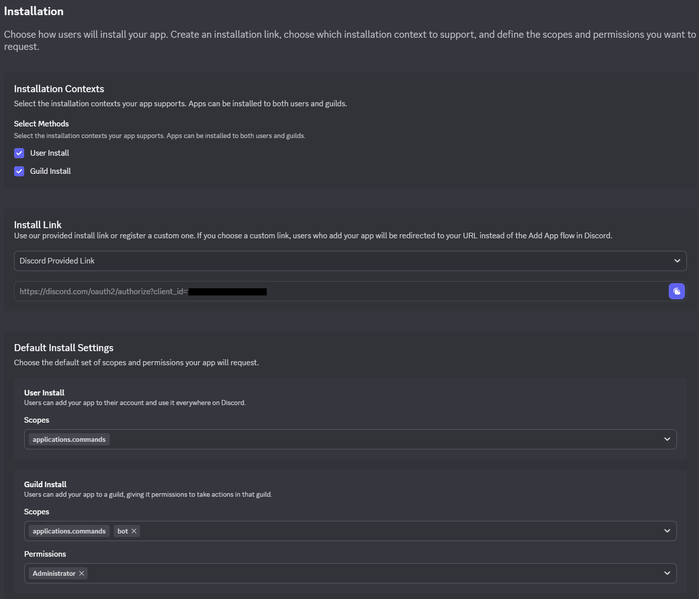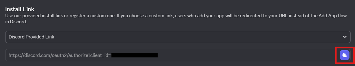 User InstallGuild Install16 - Dans la section Install Link, vérifiez que le menu Discord Provided Link est bien sélectionné