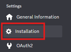 Presence IntentServer Members IntentMessage Content Intent14 - Dans le menu de gauche, cliquez sur Installation