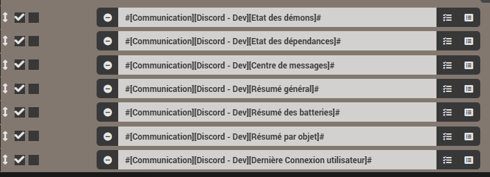 /jeedom scenarione fonctionne que si l’option “Scénarios Jeedom” est activée dans la configuration de l’équipement Discord Link lié au salon. Seuls les scénarios actifs sont pris en compte.