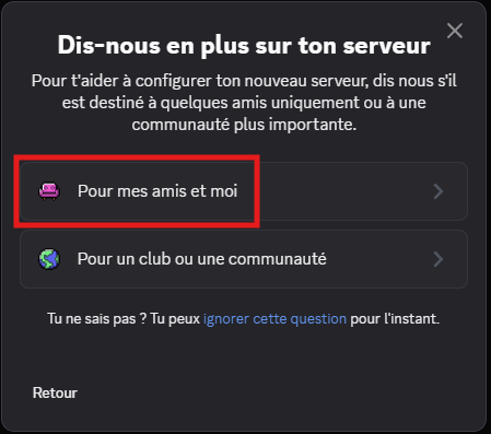 3 - Dans la fenêtre, choisissez l’option “Pour mes amis et moi”