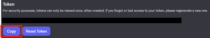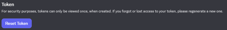 8 - Dans la section “Token” de la page, cliquez sur le bouton “Reset Token”